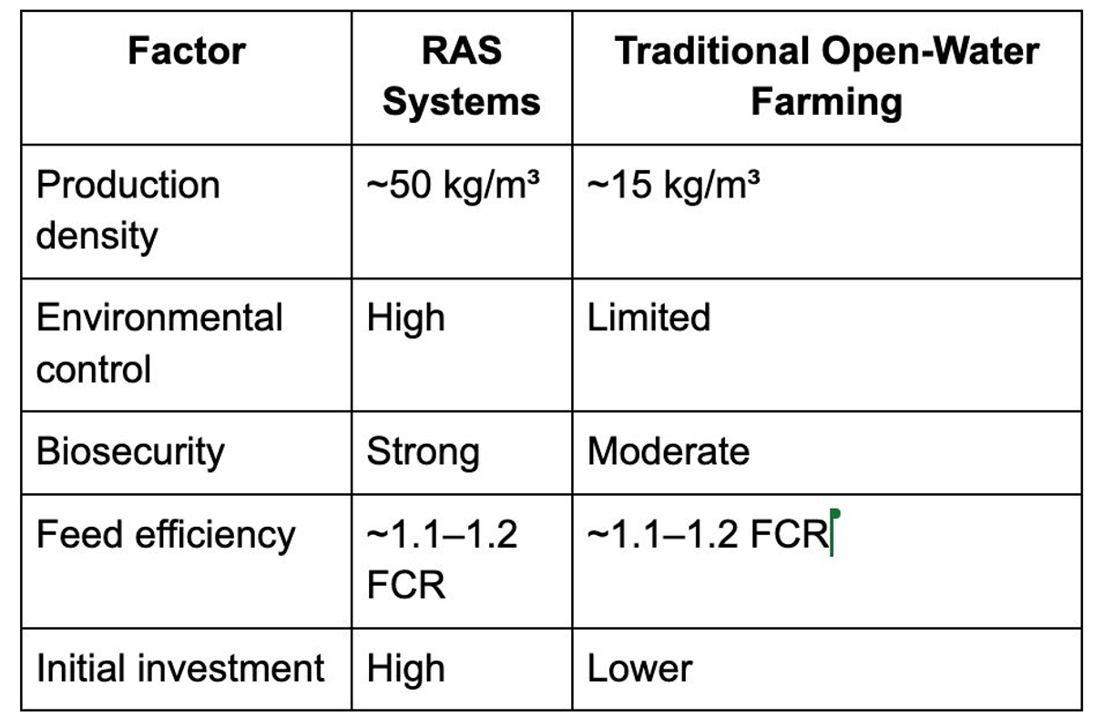 While RAS requires higher capital investment, it offers greater operational control and improved environmental management.
